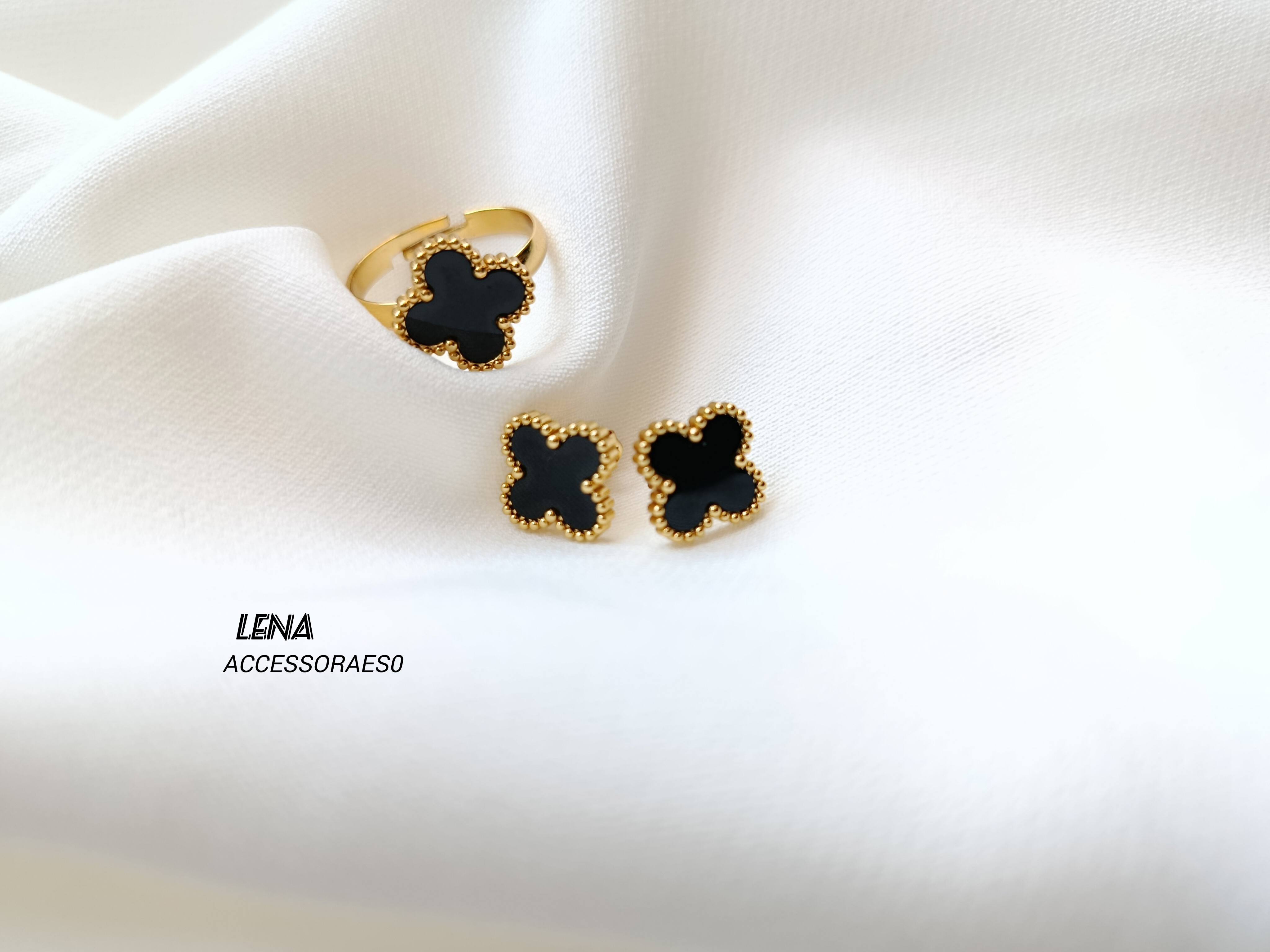 ست انگشتر و گوشواره ونکلیف مشکی..