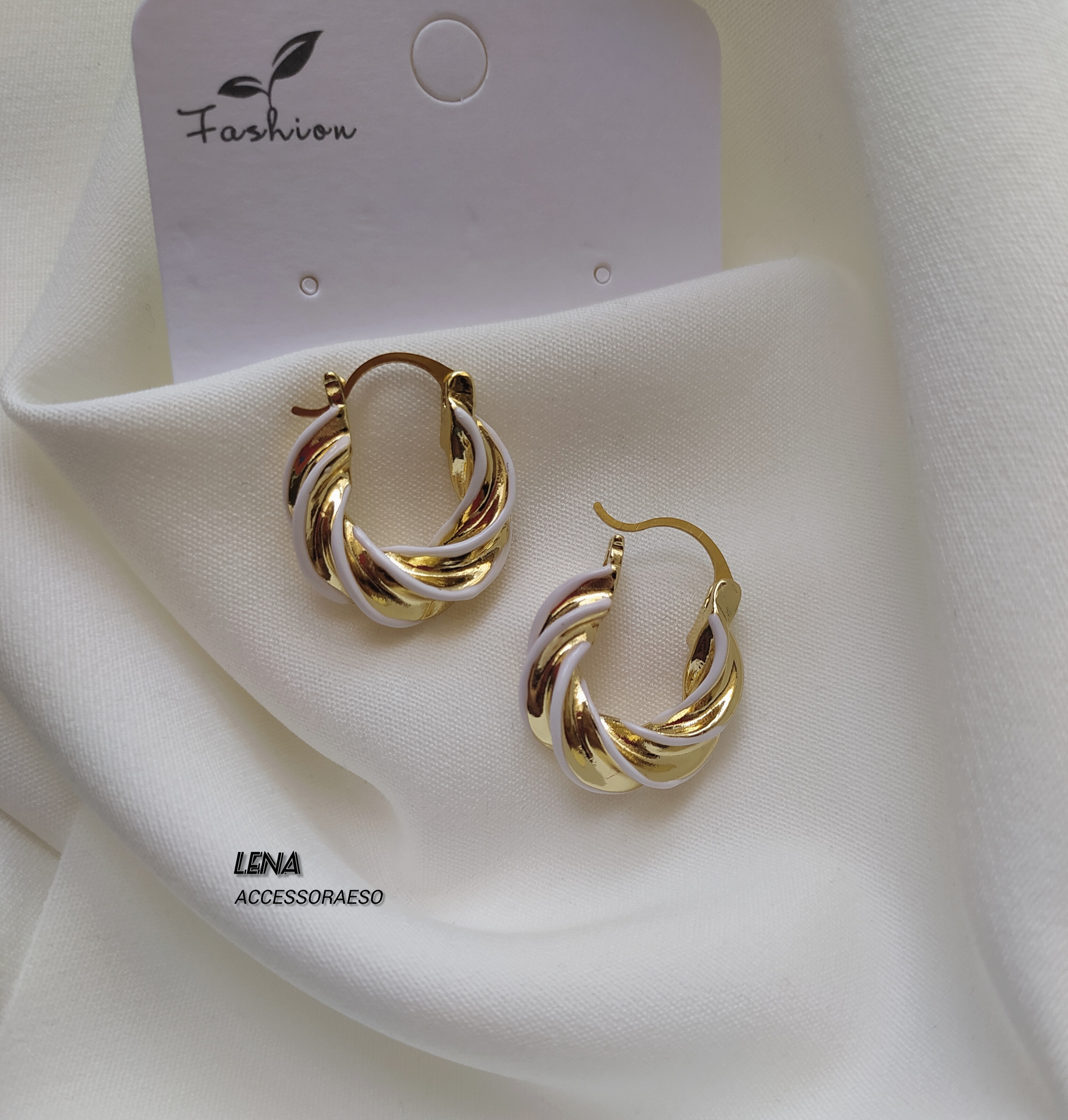 گوشواره پینترستی حلقه ای دورنگ مجلسی..سفیدطلایی