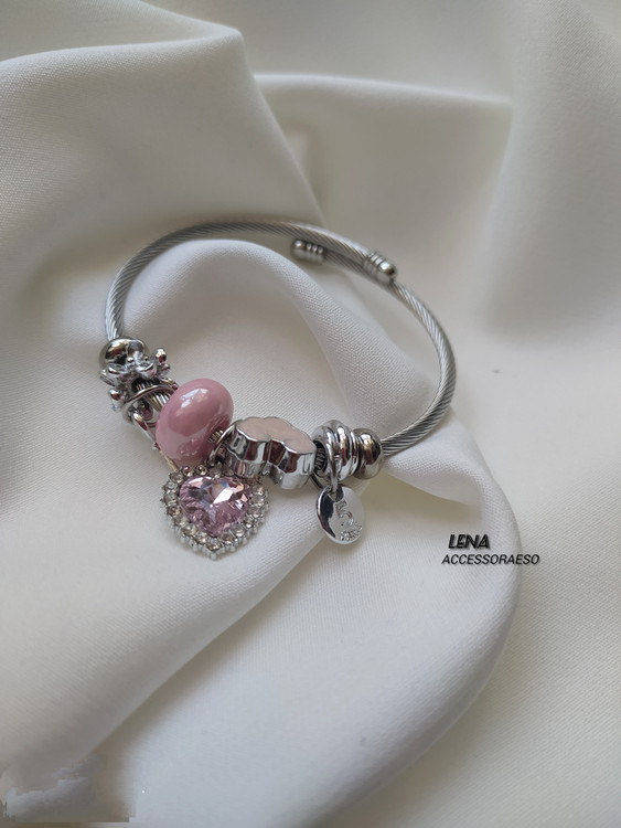 دستبند پاندورا قلبی نگین دار...